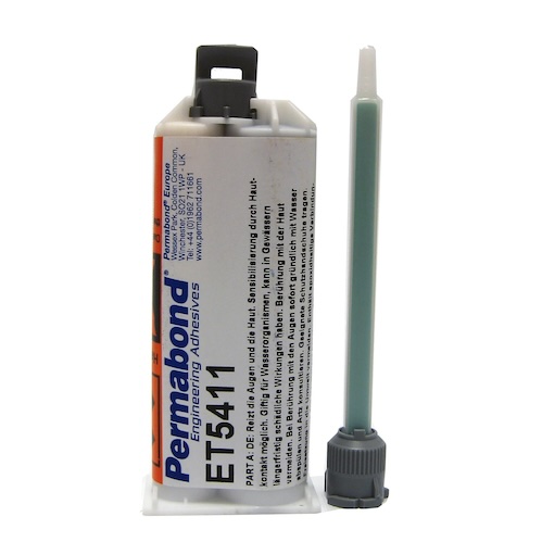 Permabond® ET5411 is een thixotrope 2-componenten epoxylijm die bestand is tegen extreem hoge temperaturen. Deze lijm verdraagt een continue temperatuur van 230°C met pieken tot 300°C. Het uitvoeren van een postcure is daarvoor wel noodzakelijk. De epoxy heeft een zachte, pasta-achtige consistentie en biedt na volledige uitharding bij temperaturen boven de 90°C, uitstekende chemische bestendigheid. Dankzij de gecontroleerde vloei-eigenschappen en het gebruiksgemak bij mengen en aanbrengen is ET5411 ideaal voor toepassingen waarbij precisie vereist is, zoals het opvullen van speling tussen onderdelen.