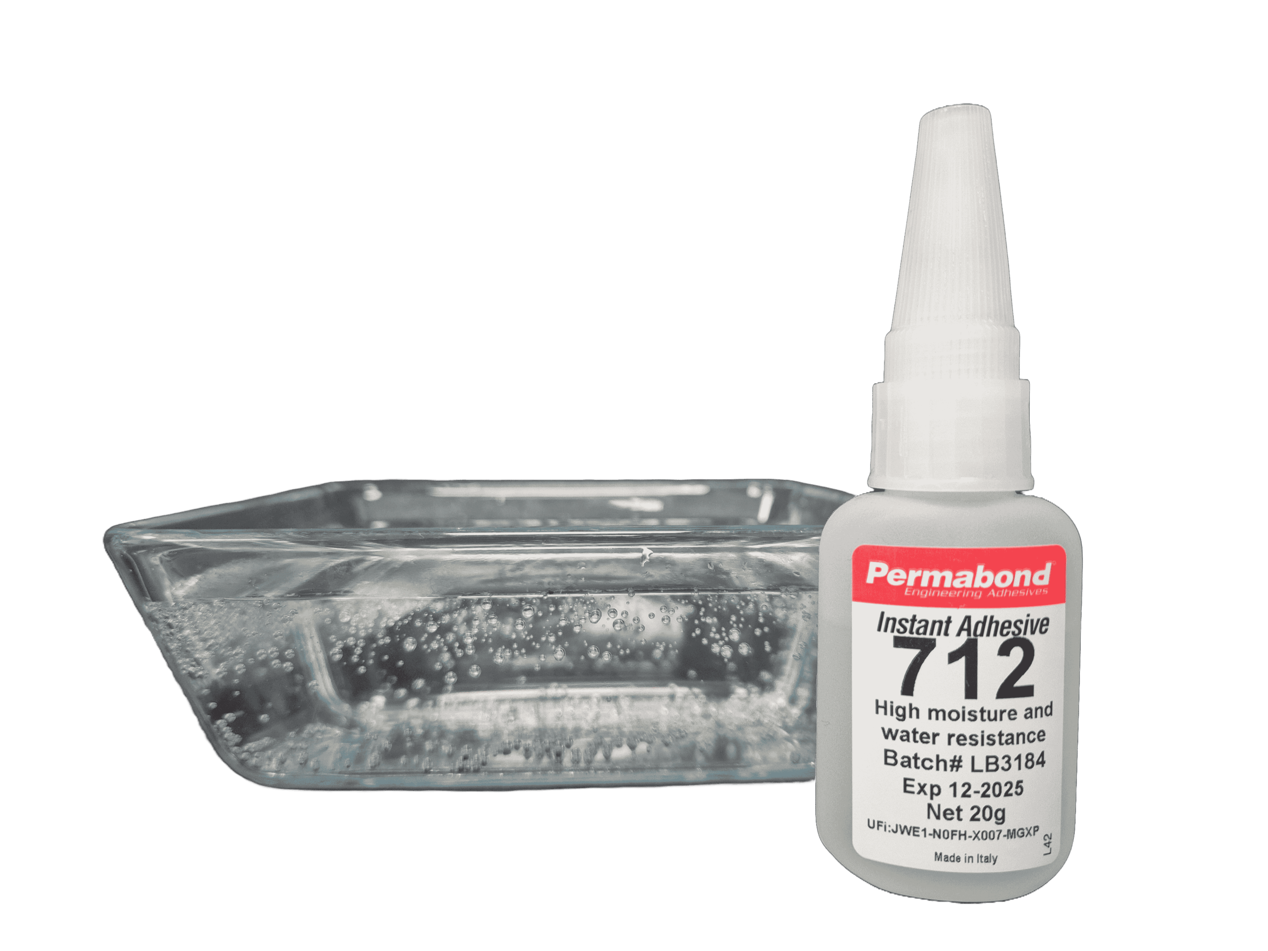 De meeste cyanoacrylaatlijmen verliezen hun sterkte bij langdurige blootstelling aan water en vocht, vooral in warme omgevingen. Permabond 712 is een oplosmiddelvrije cyanoacrylaatlijm met uitstekende weerstand tegen water, hoge temperaturen en vochtige omstandigheden.